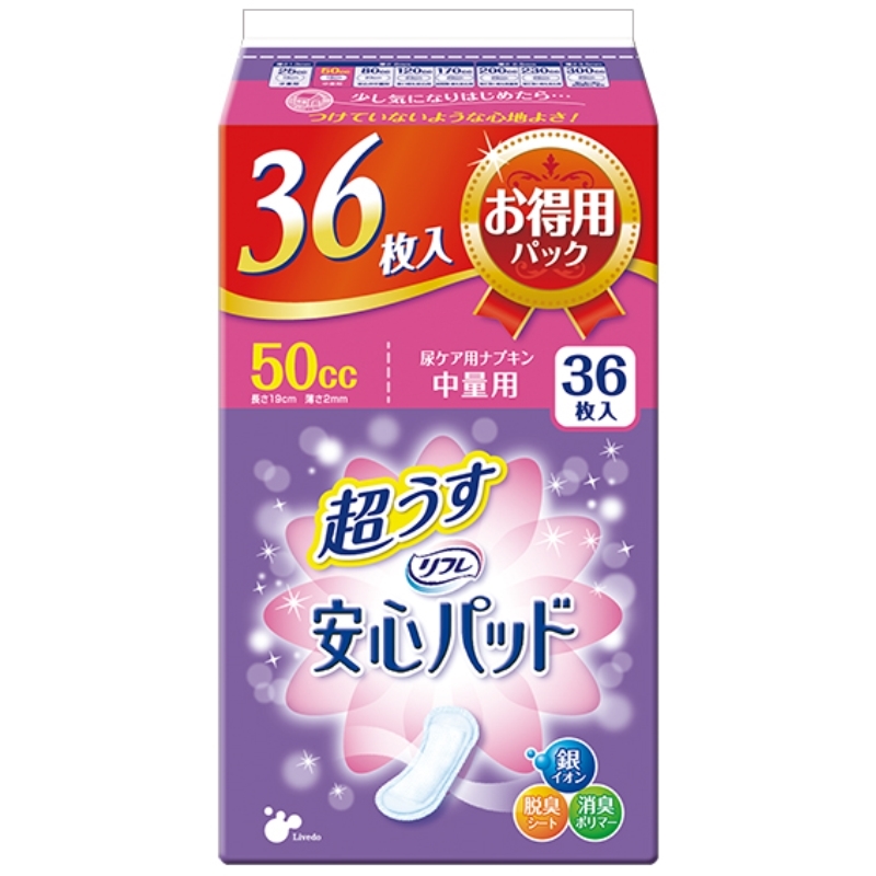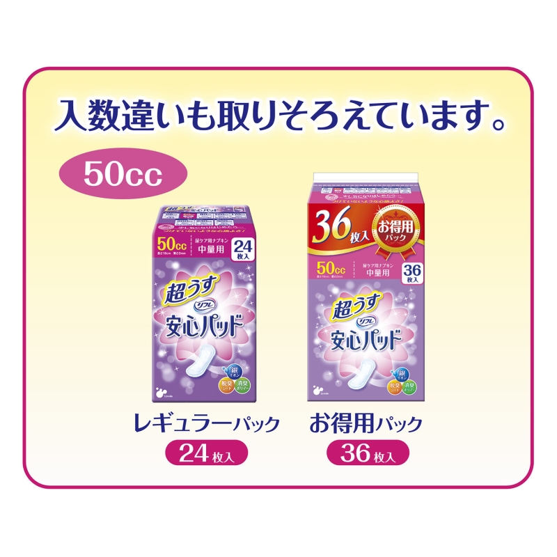 超うす型なのに安心の吸収力の軽失禁パッド。