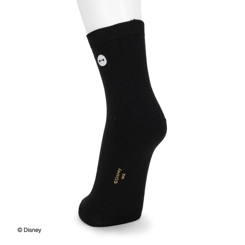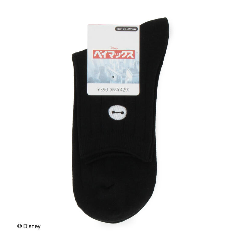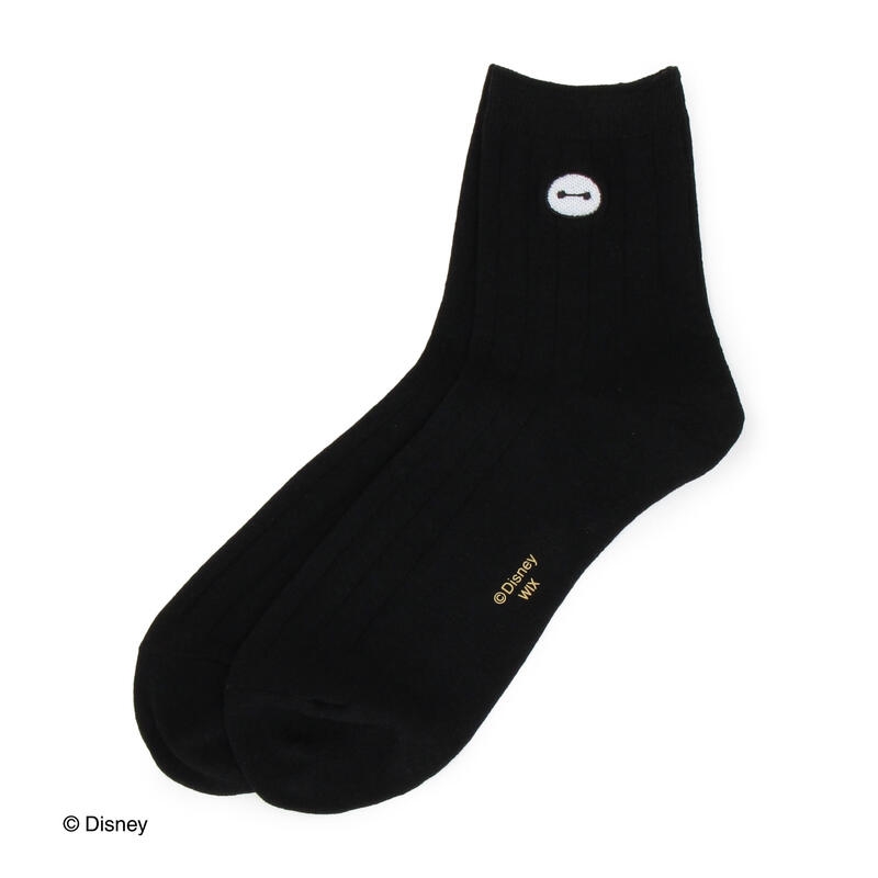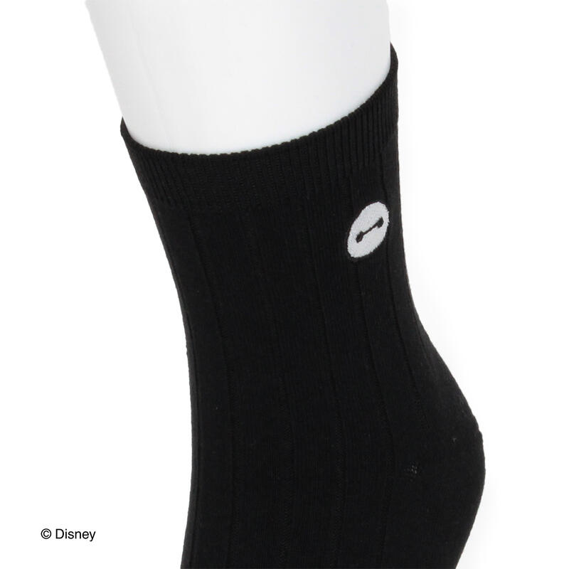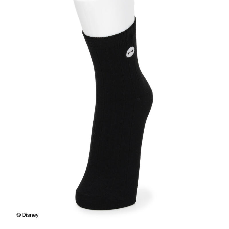 ほっこり癒し系キャラクター ベイマックスのお顔を刺しゅうしたショート丈ソックスです。オン、オフどのような服装にも合わせやすい無地リブ柄です。