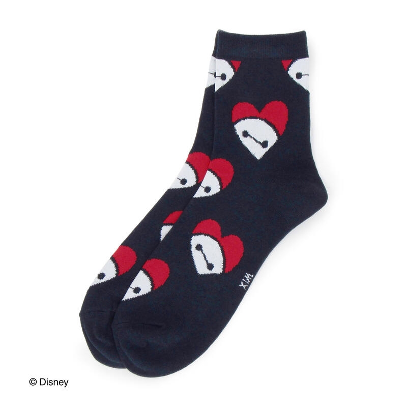 ほっこり癒し系キャラクター ベイマックスのハート柄ショート丈ソックスです。ハートベイマックス柄を散らしたかわいいソックスです。