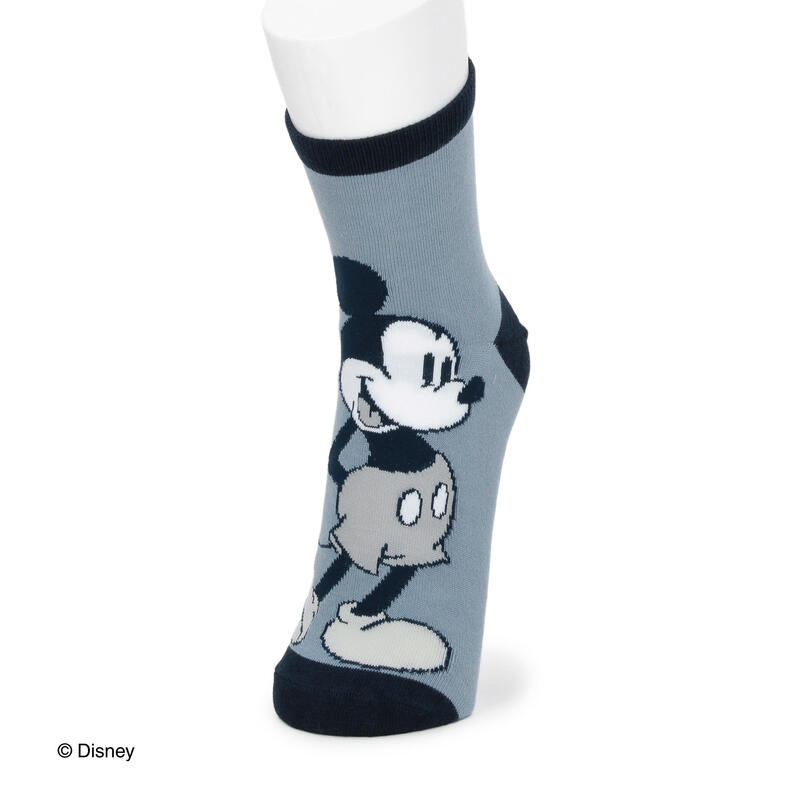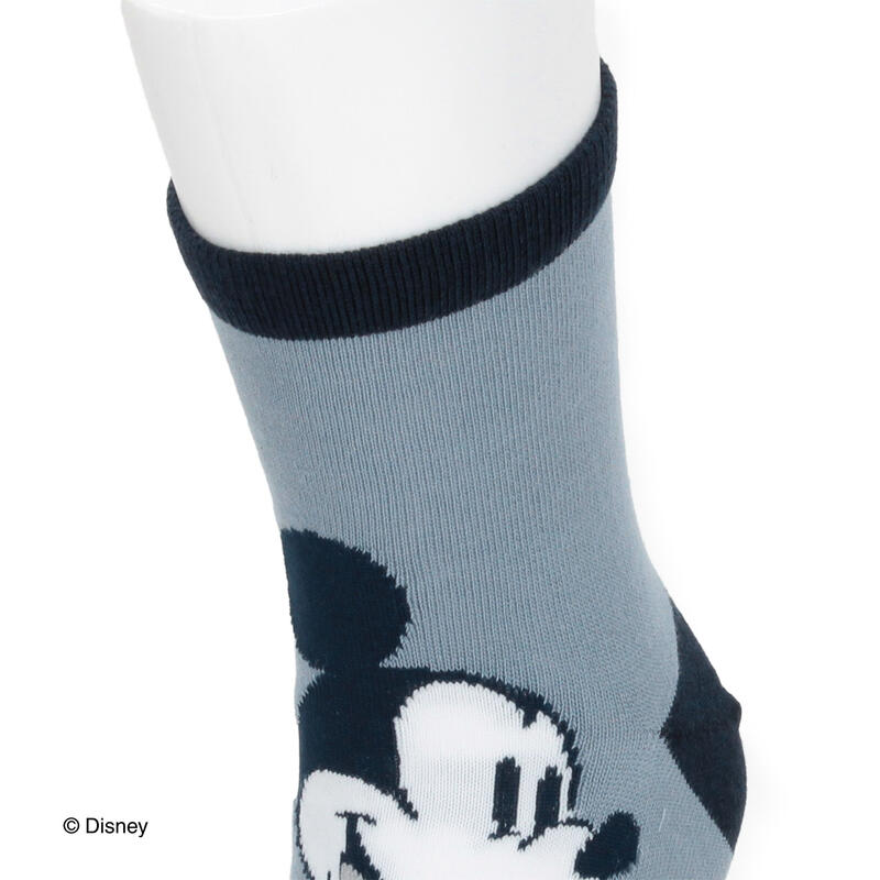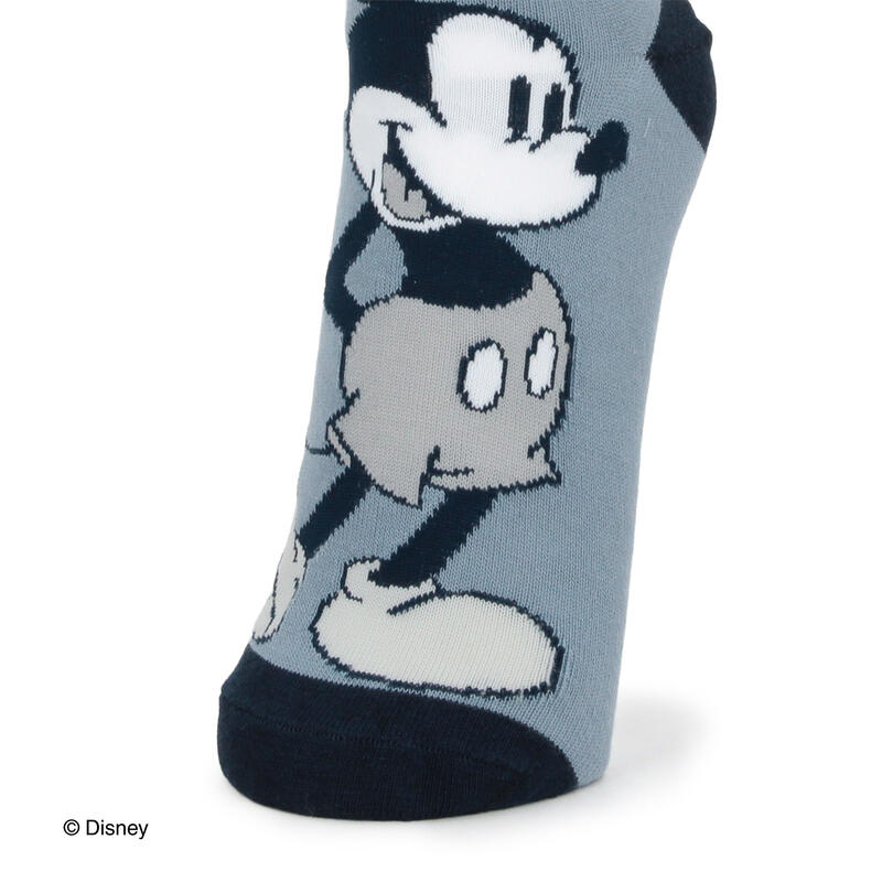 ディズニーミッキーのスタンダード柄を甲部分に編みで表現したショート丈ソックスです。ややレトロ風に仕上げた定番柄のソックスです。