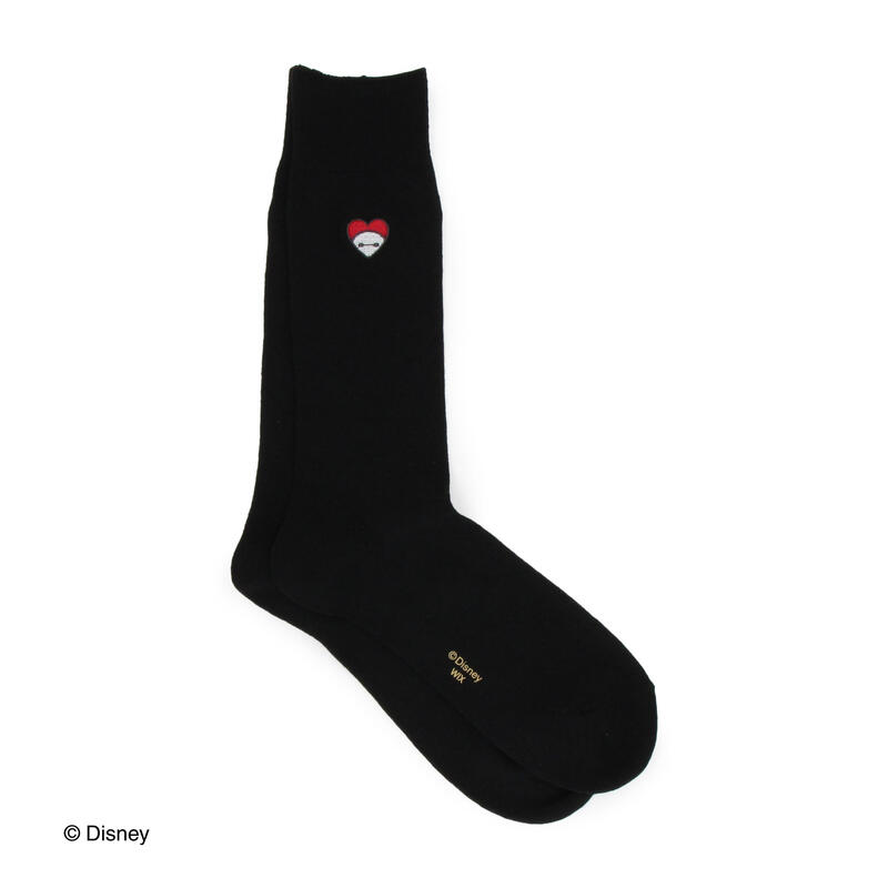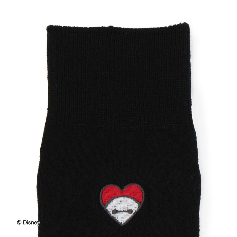ほっこり癒し系キャラクター ベイマックスのハート柄を刺しゅうしたクルー丈ソックスです。