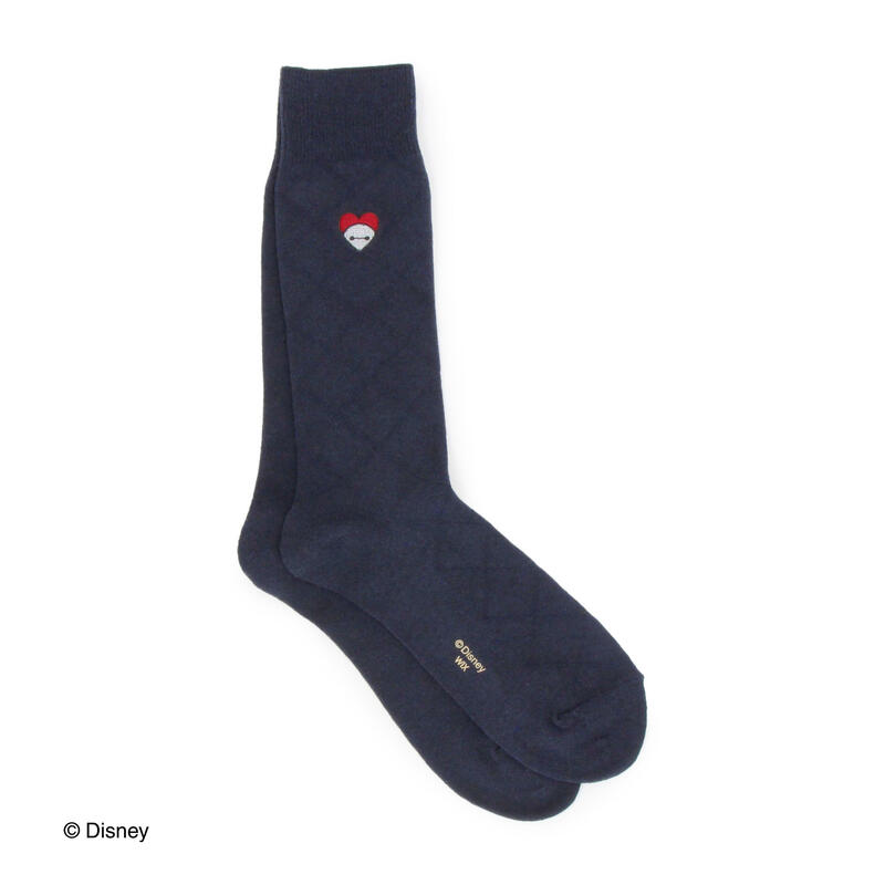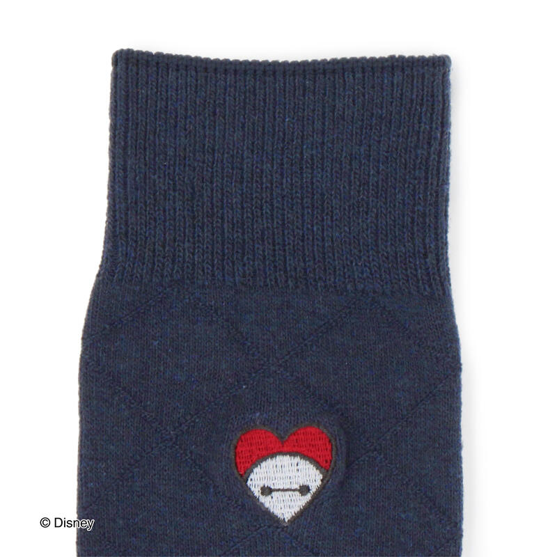 ほっこり癒し系キャラクター ベイマックスのハート柄を刺しゅうしたクルー丈ソックスです。