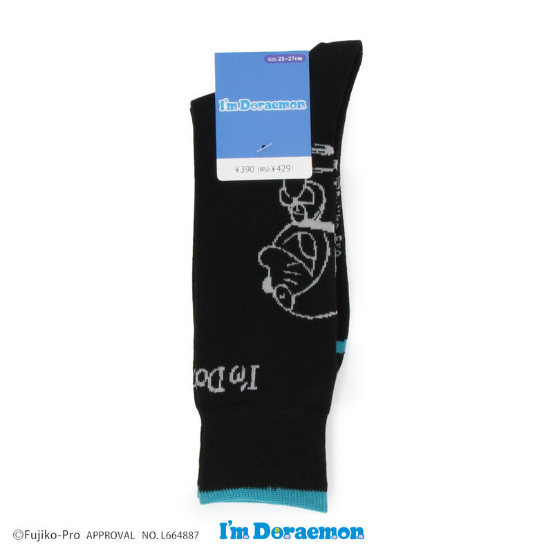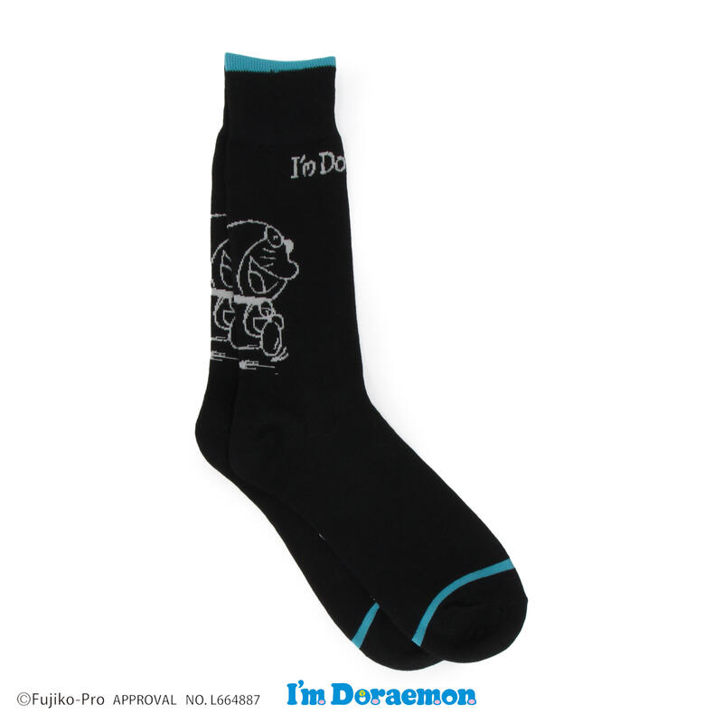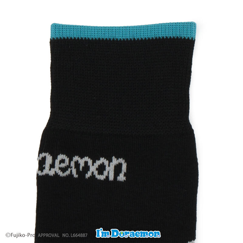 「アイムドラえもん」のアートをバックに編み柄で表現したクルー丈ソックスです。