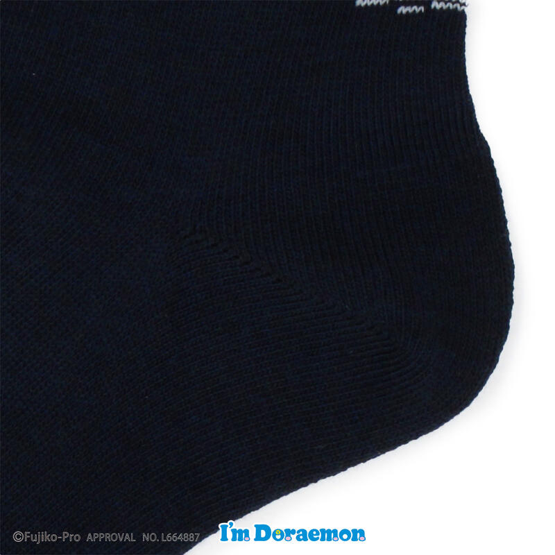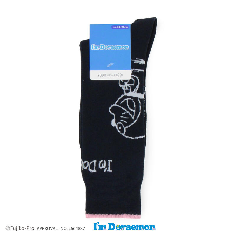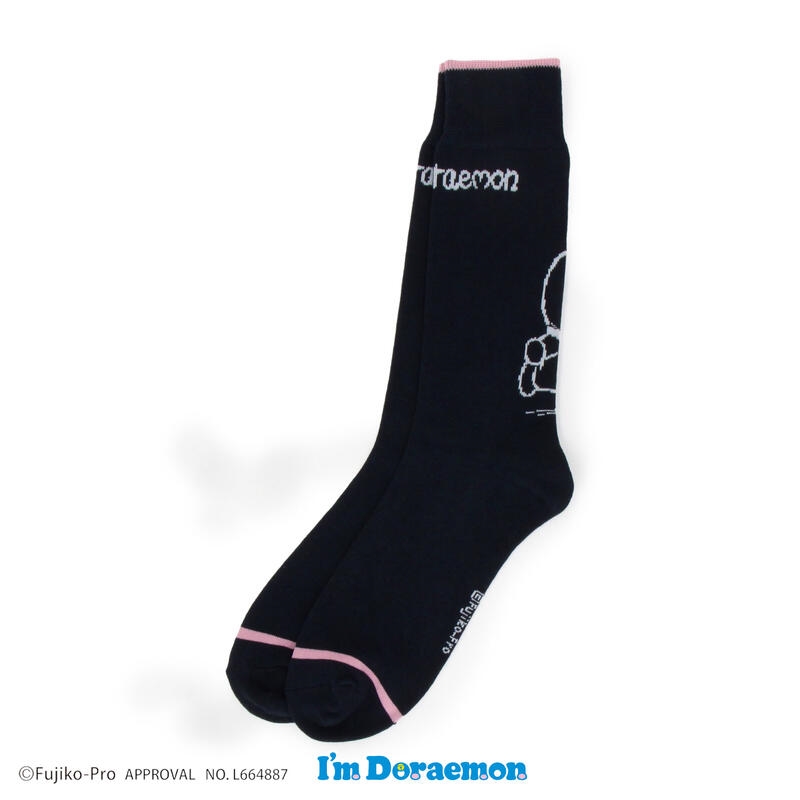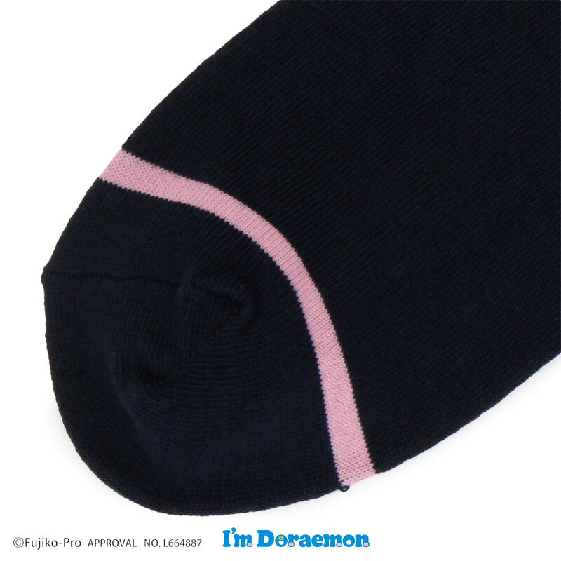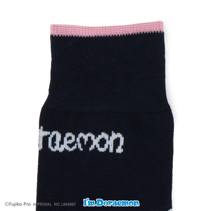 「アイムドラえもん」のアートをバックに編み柄で表現したクルー丈ソックスです。