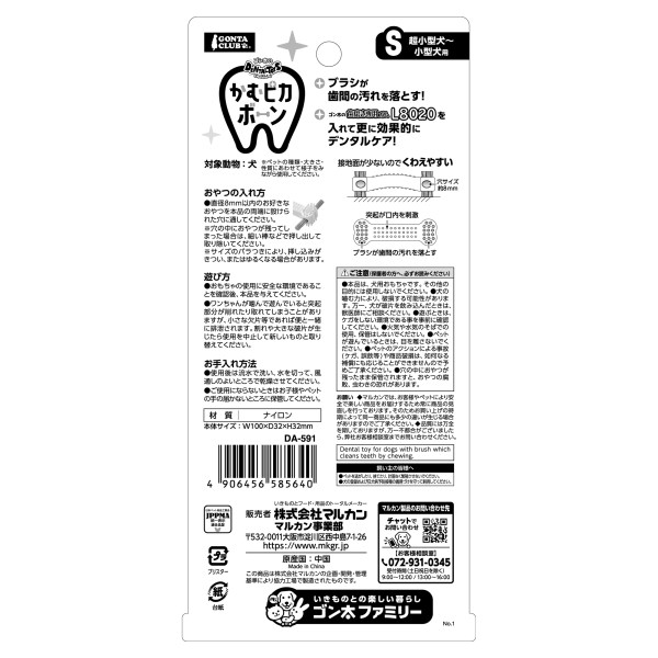 ・別売りの「ゴン太の歯磨き専用ガム L8020」を両端の穴(直径約8mm)に差し込むことで、