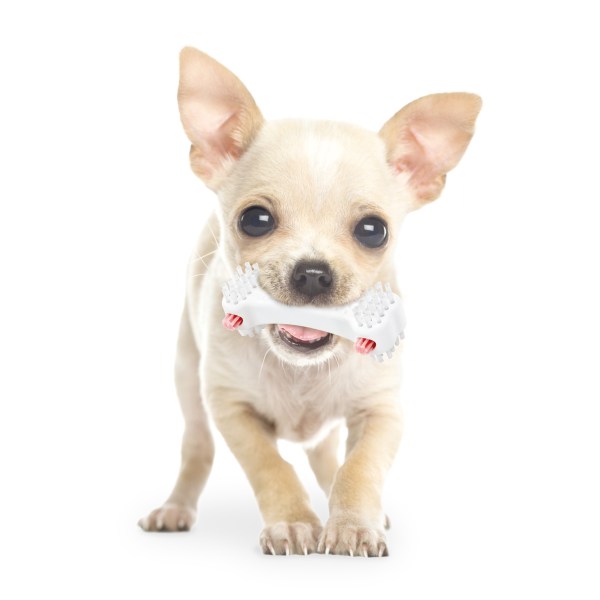 ・このおもちゃは、噛むことで突起が犬の口内を刺激し、