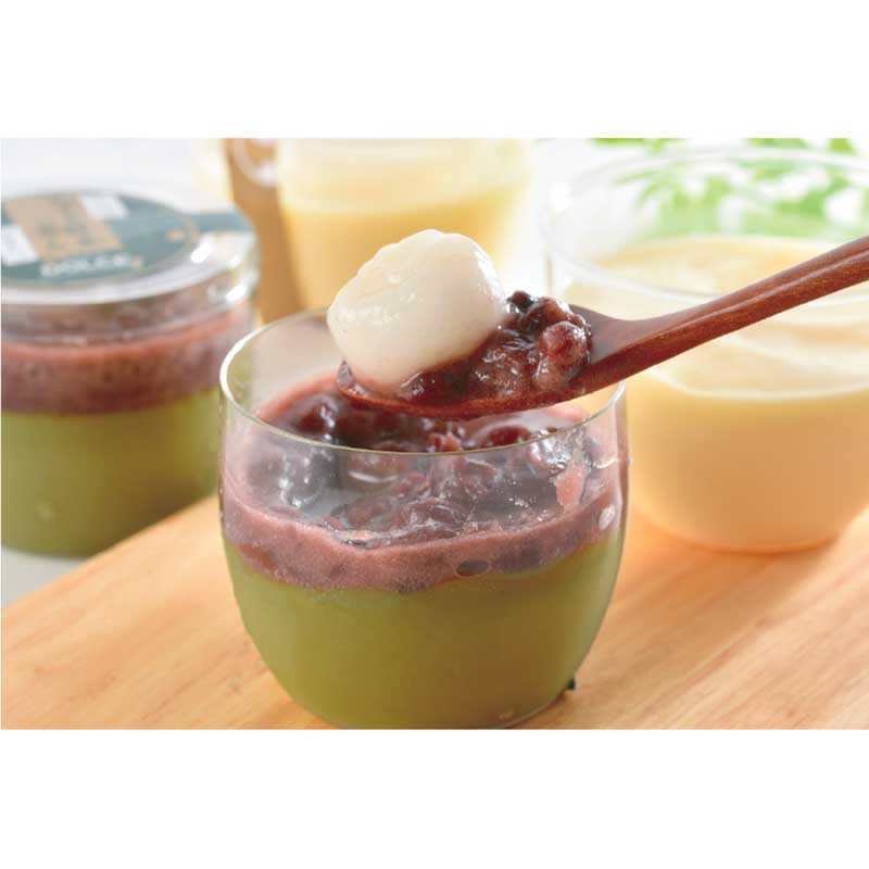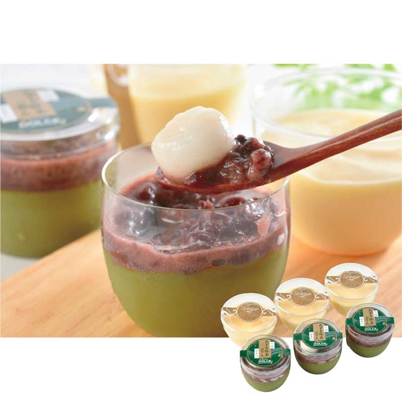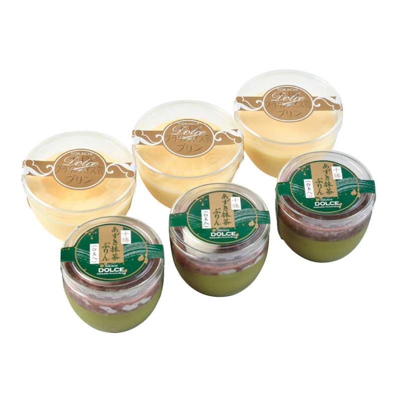 十勝小豆抹茶プリン(白玉入り)80g×3、十勝ブラウンスイスプリン80ml×3