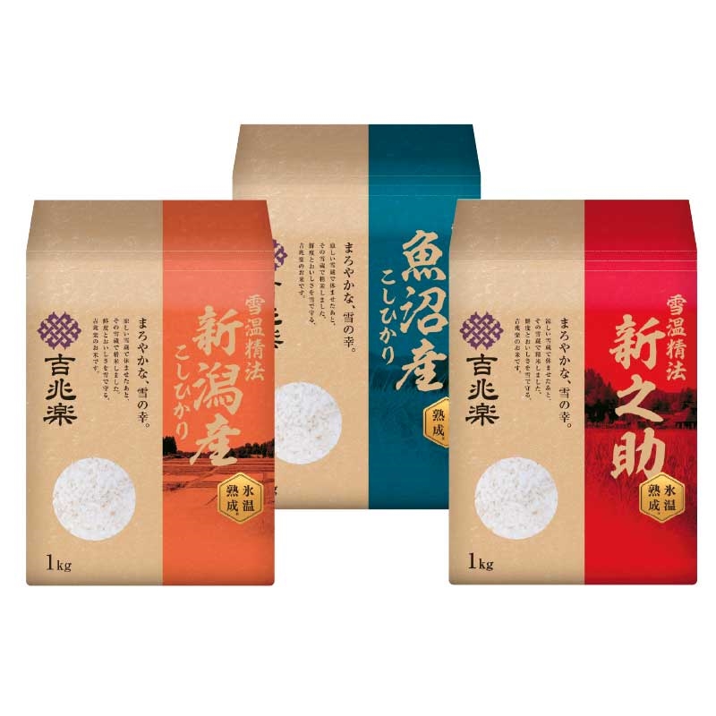 魚沼産こしひかり、新潟県産こしひかり、新潟産新之助 各1kg×1