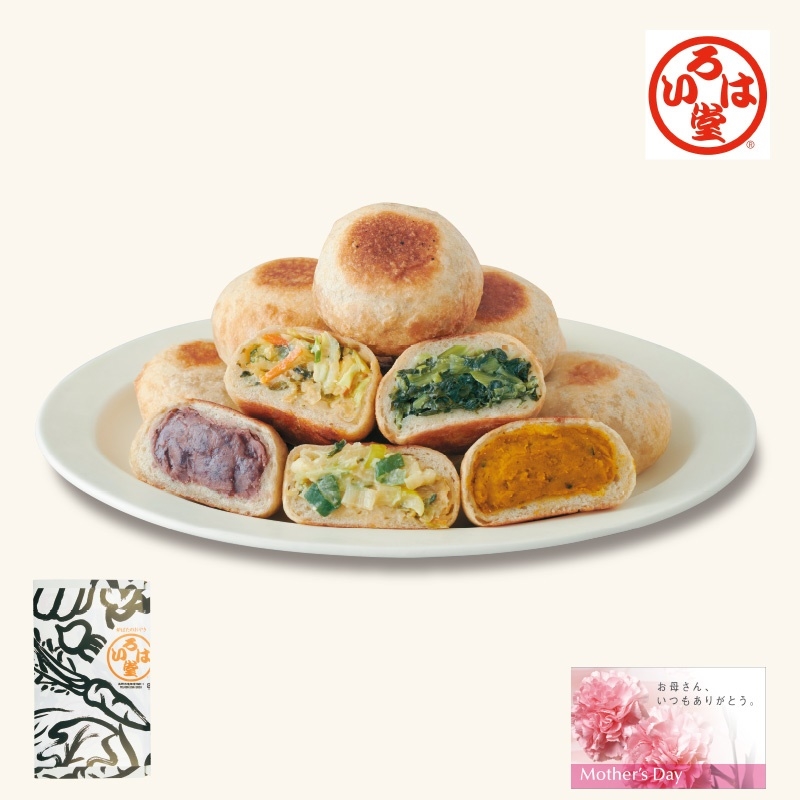 野菜ミックス、かぼちゃ、粒あん、野沢菜、ねぎみそ各90g×2 計10個、メッセージカード付