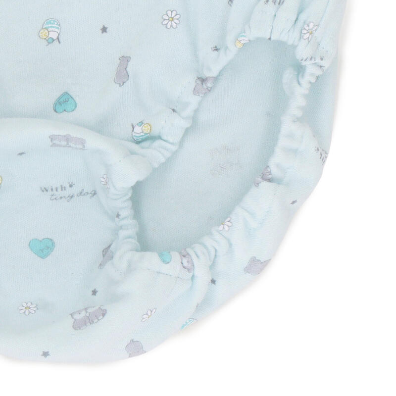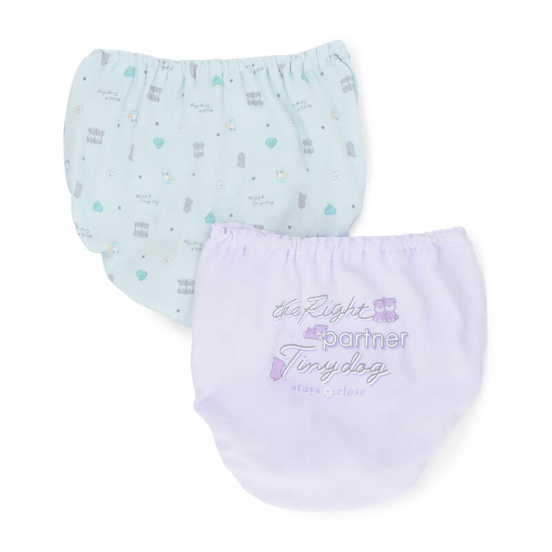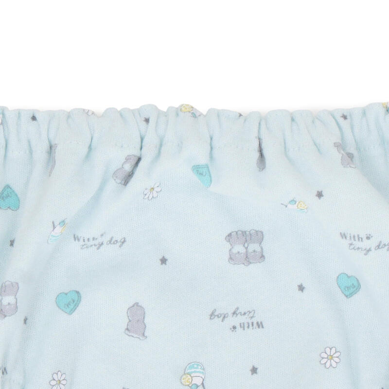 キュートなイヌをモチーフにした、総柄とワンポイントデザインの組み合わせ。