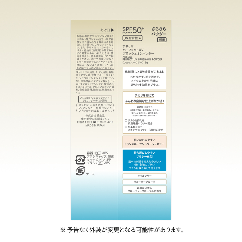 シリカ、酸化チタン、酸化亜鉛、ステアリン酸、水酸化Al、トロメタミン、ジラウロイルグルタミン酸リシンNa、