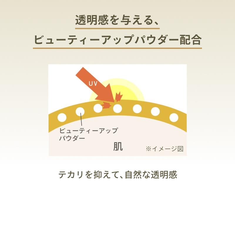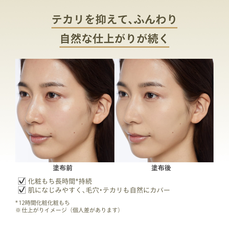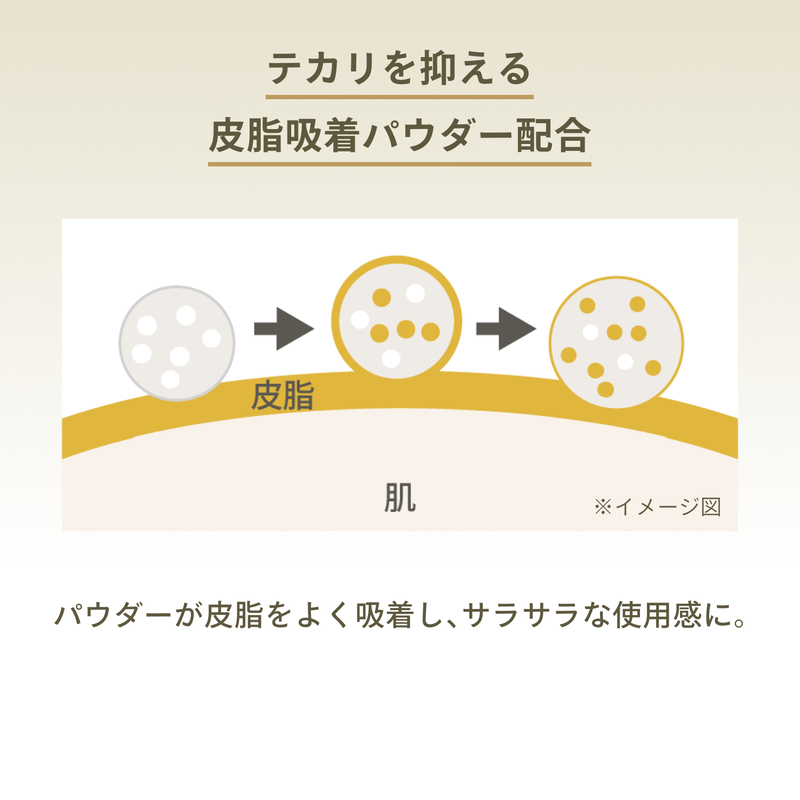テカリを抑えてふんわり自然な仕上がりが続く。肌になじみやすいトランスルーセントベージュカラー。
