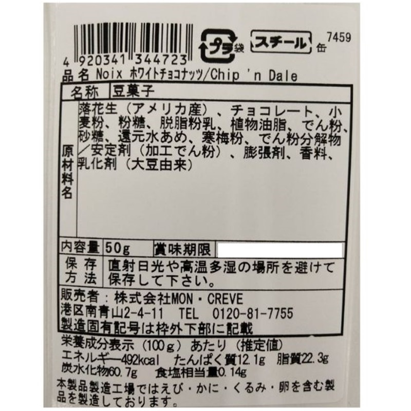 ピーナッツにホワイトチョコレートをコーティングしたお菓子です。