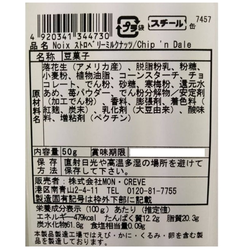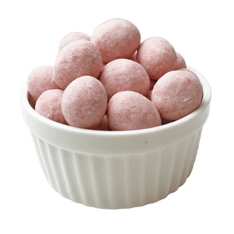 ピーナッツにストロベリーミルク味のチョコレートをコーティングしたお菓子です。
