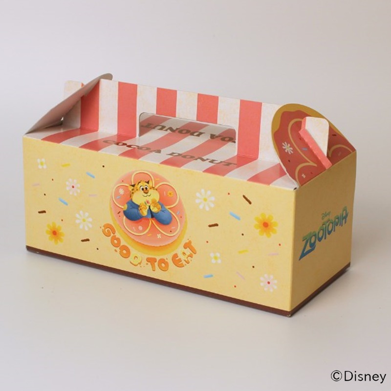 可愛らしい手持ちのドーナツ箱のパッケージになっています。