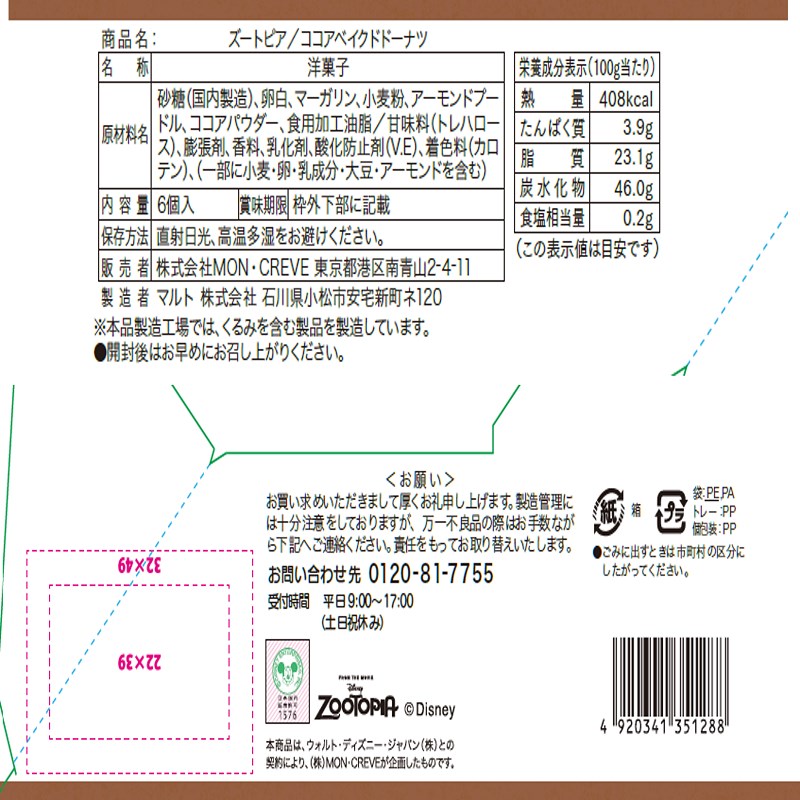 ズートピアの劇中のドーナツをイメージしたココアベイクドドーナツです。