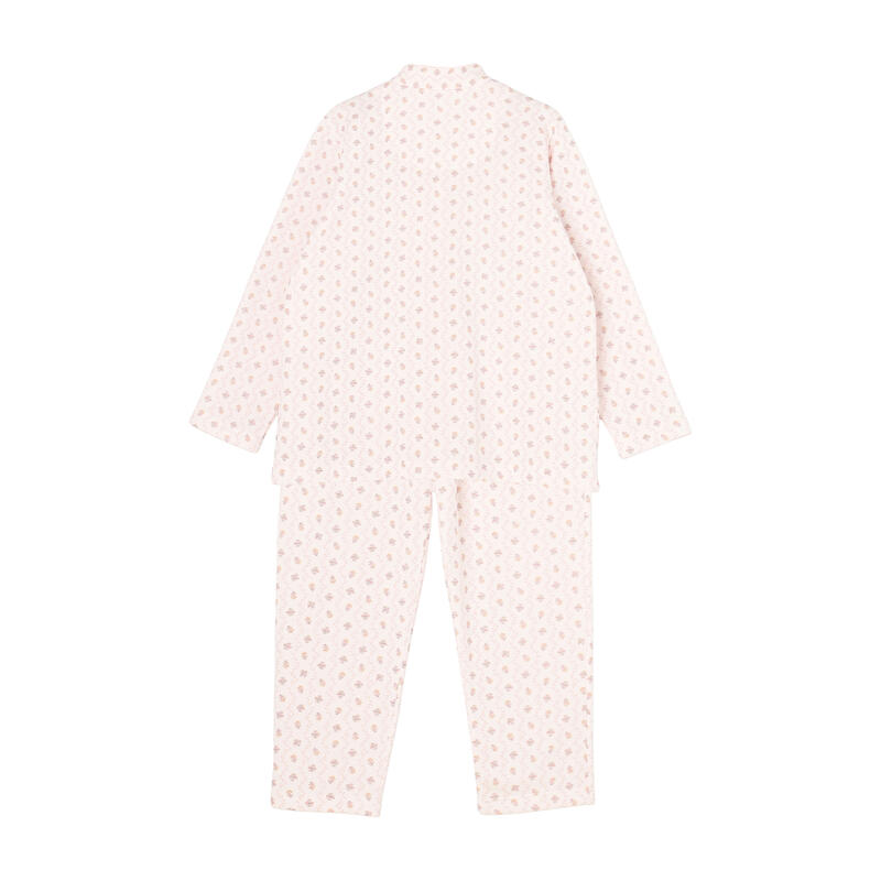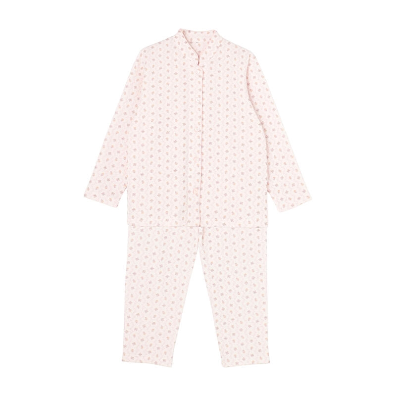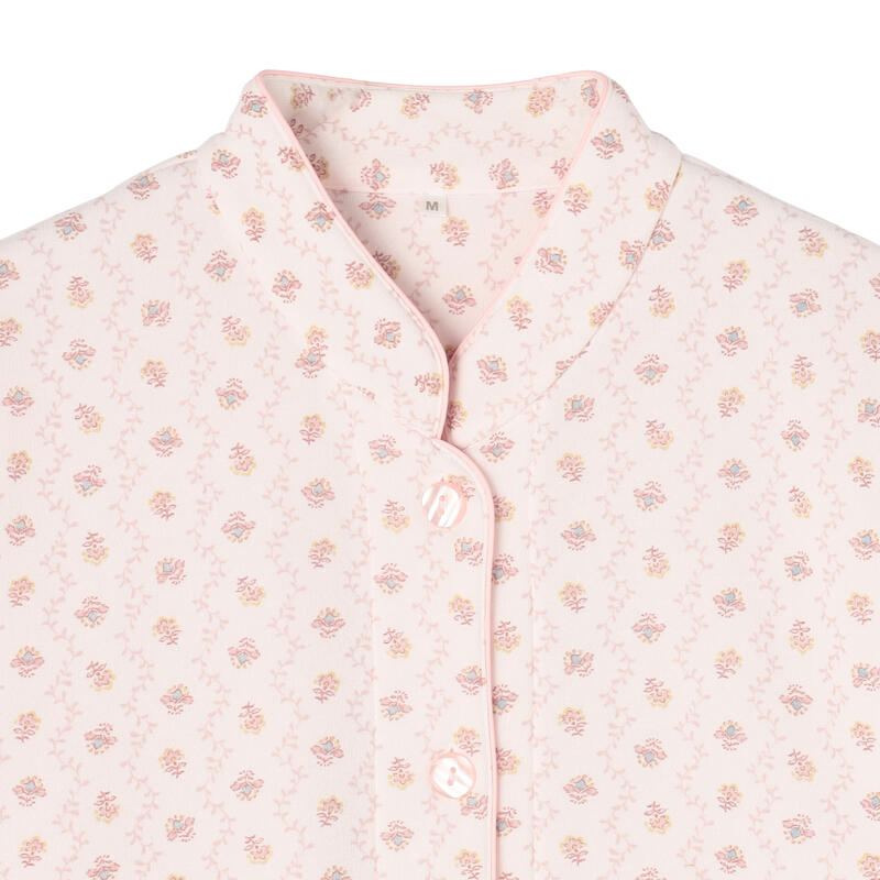 花柄をソレイユ柄風に表現したマオカラーのシャツパジャマです。