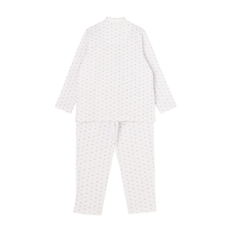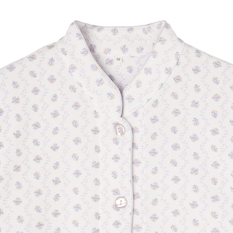 花柄をソレイユ柄風に表現したマオカラーのシャツパジャマです。