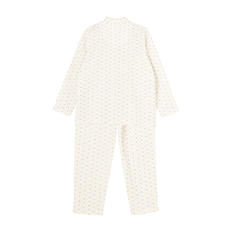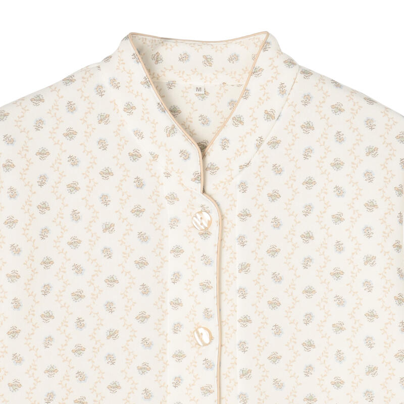 花柄をソレイユ柄風に表現したマオカラーのシャツパジャマです。