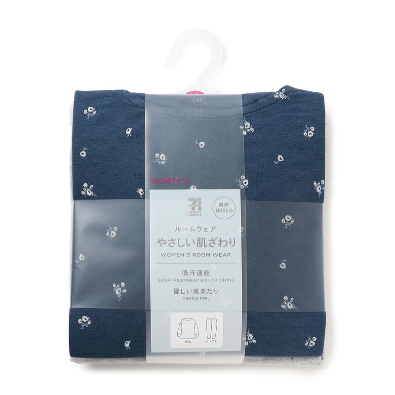 優しい肌側綿100%素材、ルームウェアで動きやすいデザインになっています。