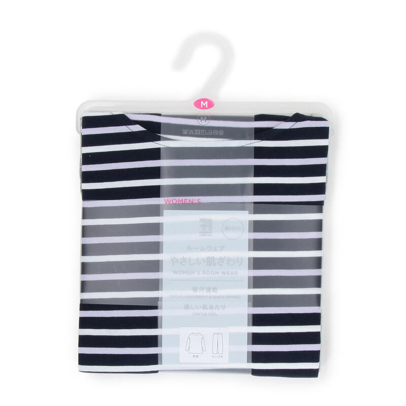 綿100%の肌触り柔らかな天竺素材を使用したルームウェア。吸汗速乾で汗冷えしにくい。