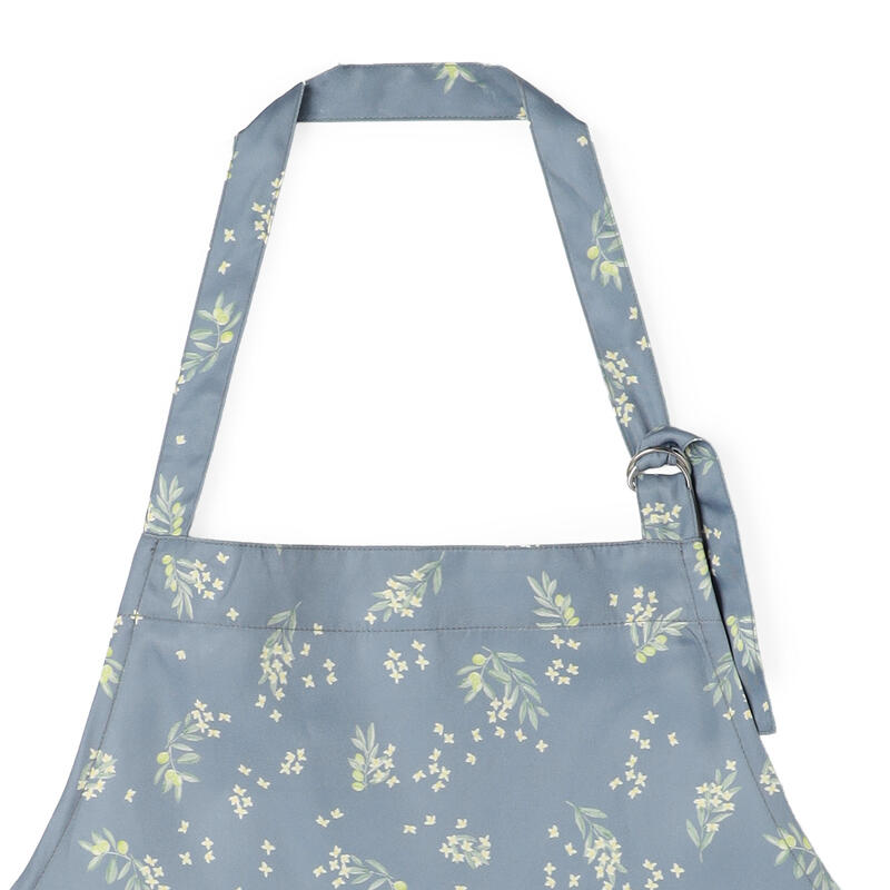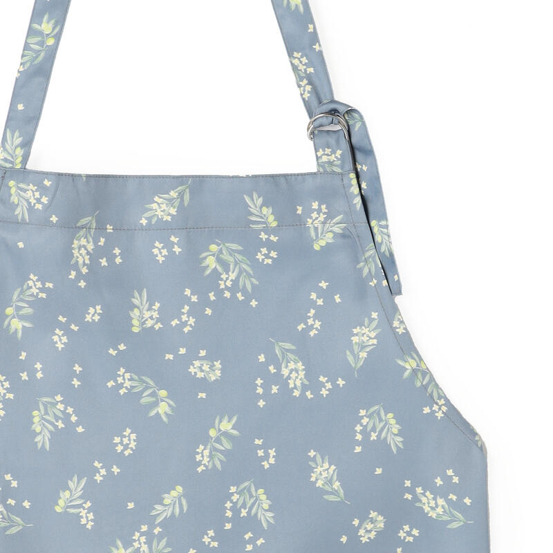 やわらかなトーンが女性らしい、オリーブ柄のエプロン。