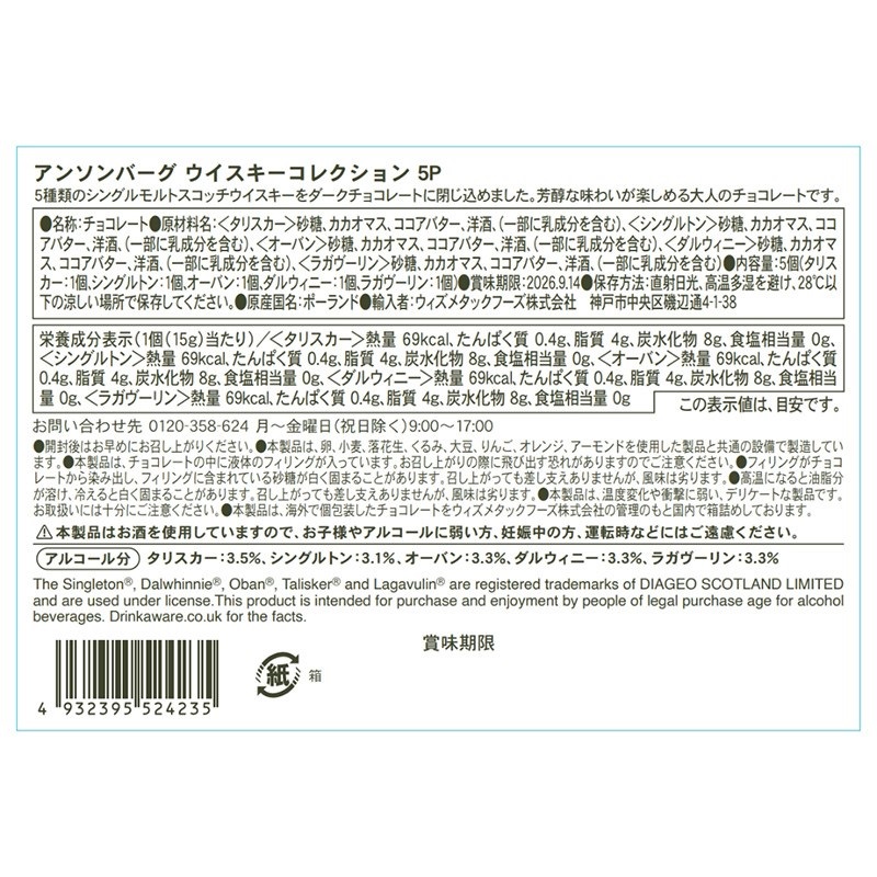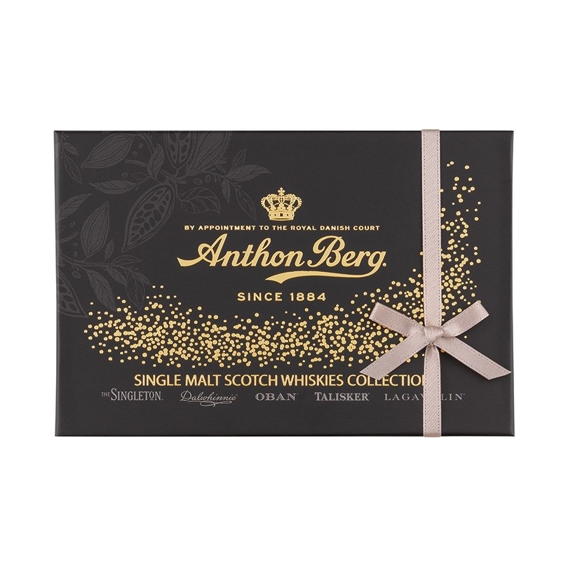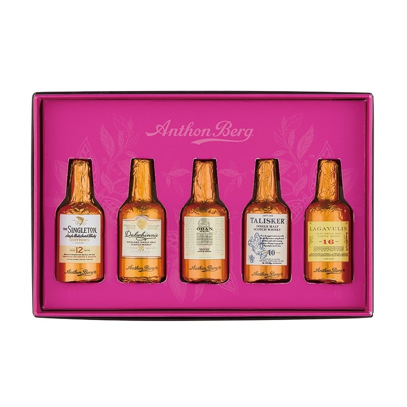 世界的に有名なシングルモルトスコッチウィスキー入りのダークチョコレート5個箱。