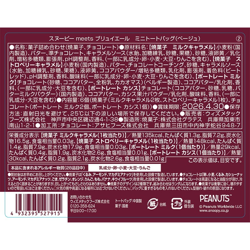 ふかふか素材のミニトートバッグに4種類のお菓子入り。