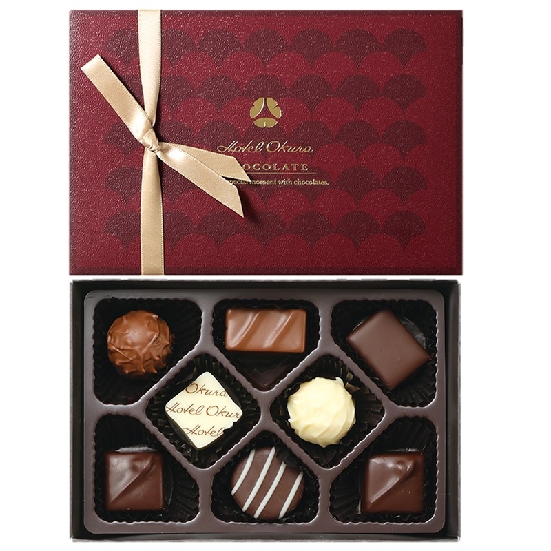 ミルク、ホワイトのトリュフと、ナッツや塩を使用したショコラ、ロゴがプリントされた