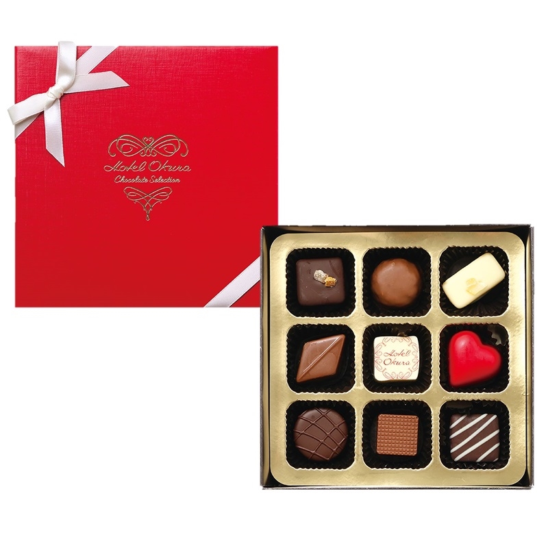 ハート型のラズベリー味のショコラやキャラメル、ピスタチオ味のショコラをアソート。