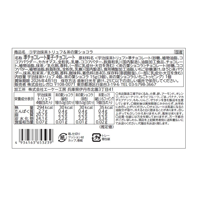 宇治抹茶のトリュフとリーフ型ショコラの詰め合わせ