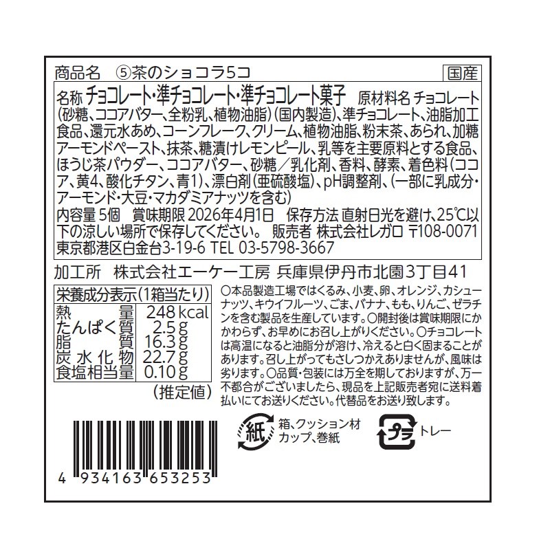 こだわりの茶葉5種類を使用したショコラの詰め合わせ