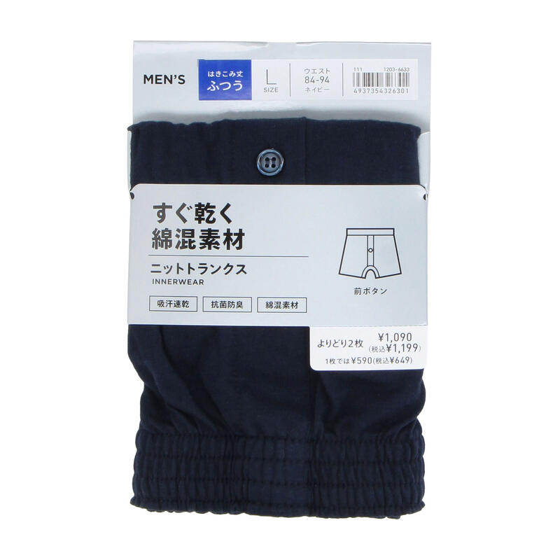 綿とポリエステルを混紡しており、綿の肌ざわりと通気性・ポリエステルの型崩れしにくい長所を活かした素材です。