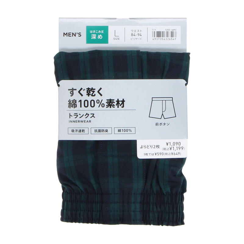 はき込み丈(前身と後身と股上を合わせた長さ)は深め、脇の縫製仕様が少し前身内側に入っており、