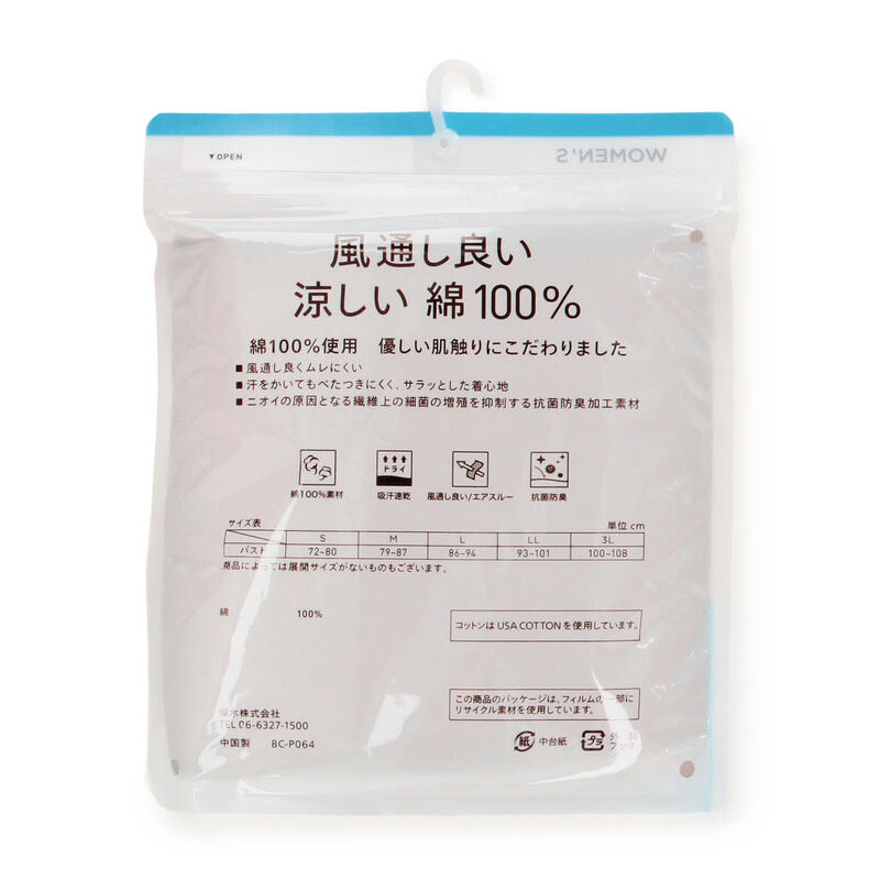 風通しが良くムレにくい涼しい綿100%商品であり、吸汗速乾性と抗菌防臭性も兼ね備えています。