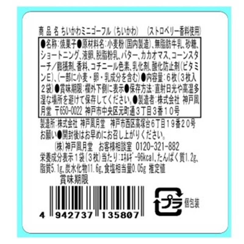 バニラ、ストロベリー、チョコレートの3種類6枚(3枚入×2袋)