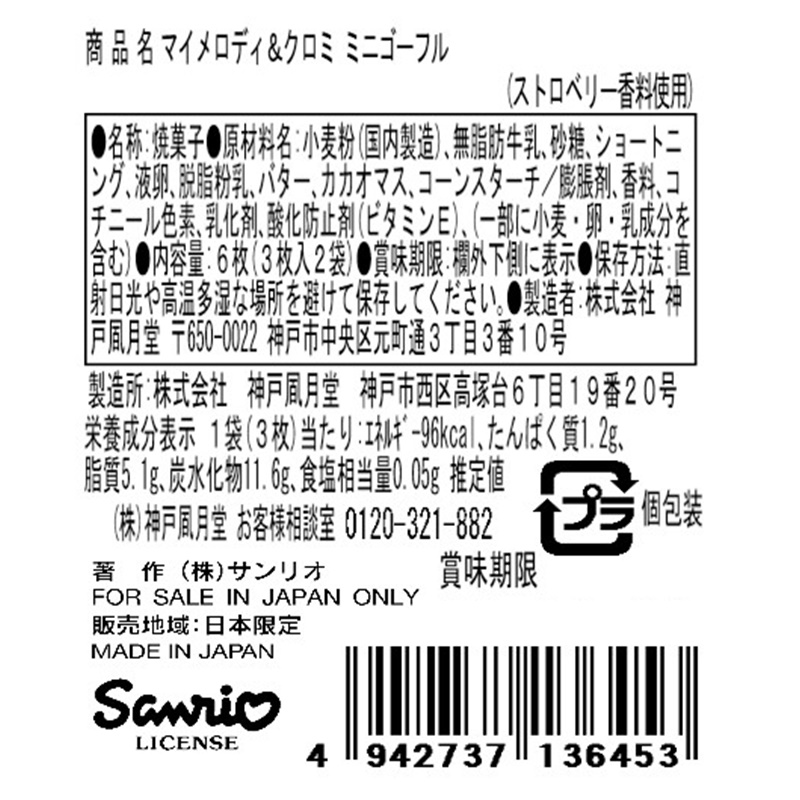 人気の「マイメロディ」デザイン缶のゴーフルです。内)プティーゴーフル6枚