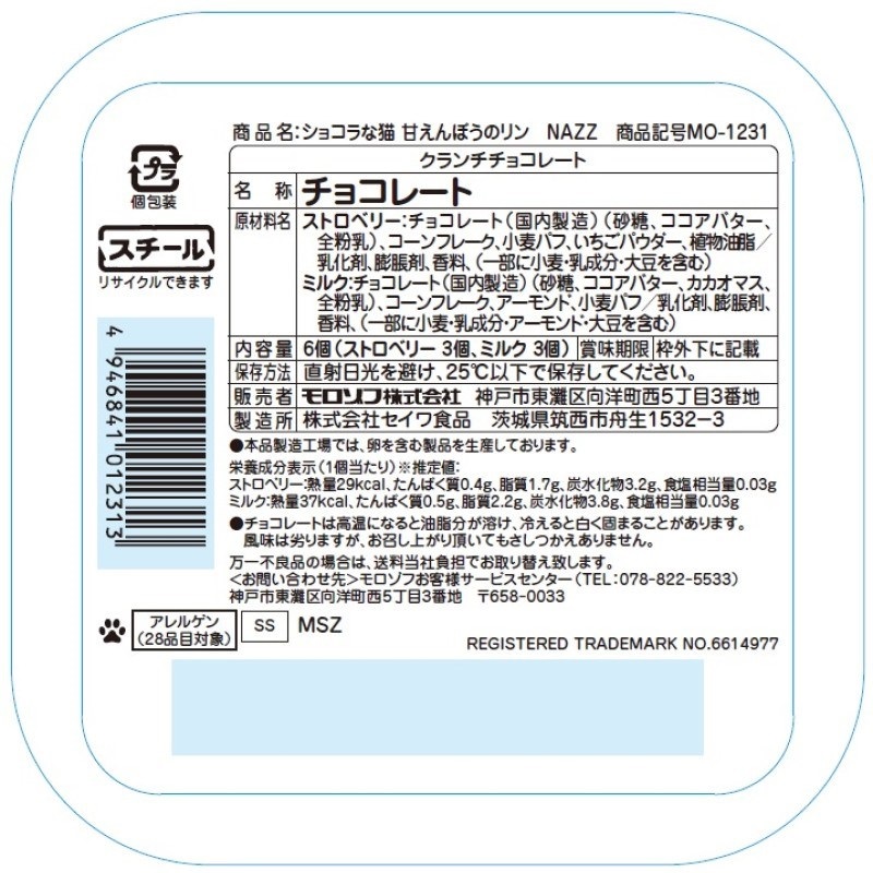 2種類の猫型クランチチョコレートを詰合せ。