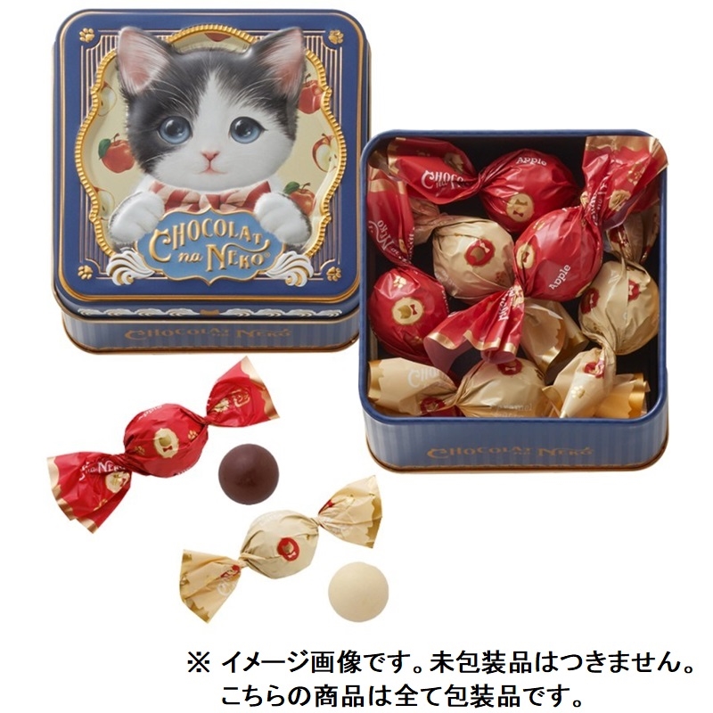 気分屋でやんちゃな白黒ハチワレ猫「タイガ」を描いたネイビー色の缶に、