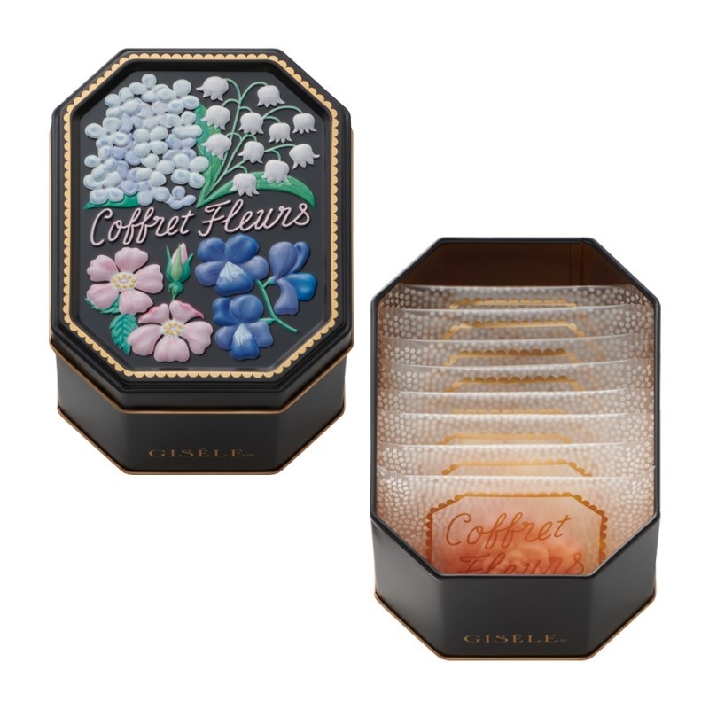 喜びあふれる花束をイメージしたフェミニンな缶入りチョコレート。