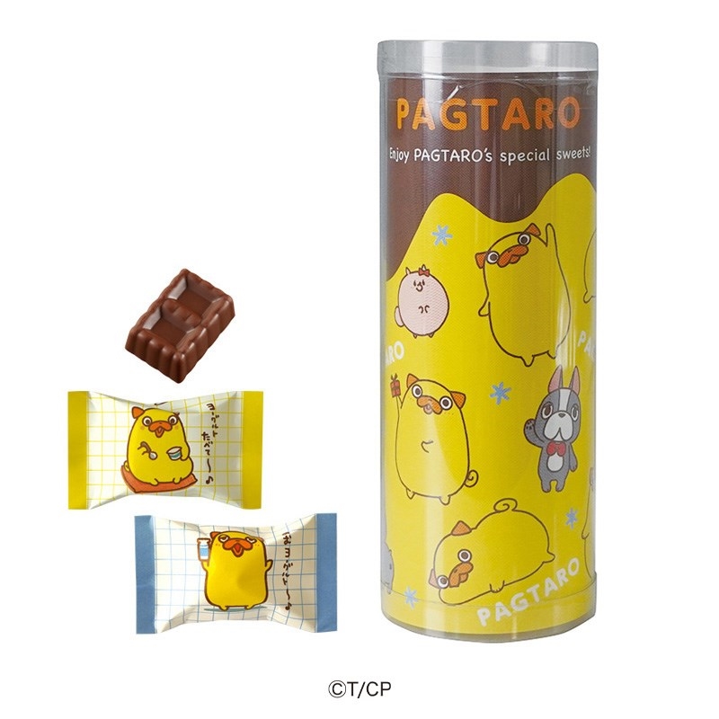 かわいいデザインの円筒ケースにミルクチョコを詰めました。(個包装)