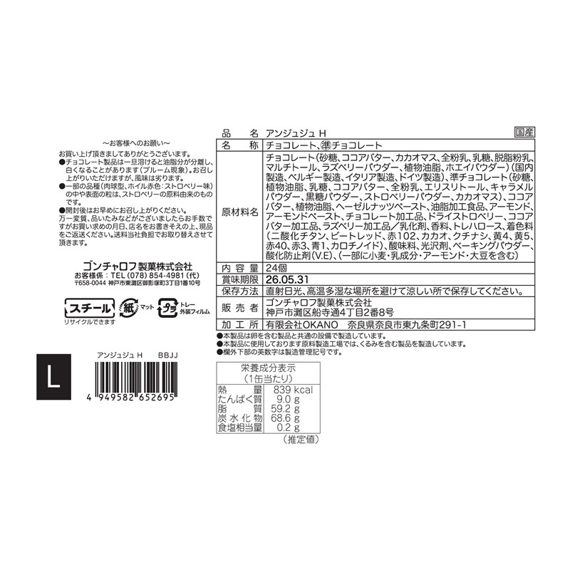 ※アレルギー表示およびアルコール分については、パッケージの裏面画像をご確認頂けますようお願い致します。