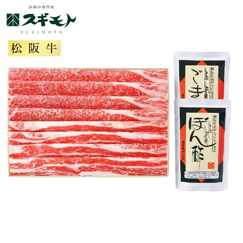 松阪牛モモ・バラ各220g(計440g)、ぽん酢170g、ごまだれ170g