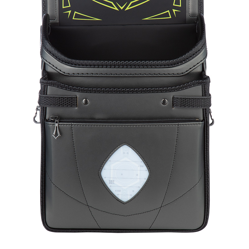●エアロキャッチ・・・肩ベルトが自然に立ち上がることによりランドセルが背中にぴったりフィットします。