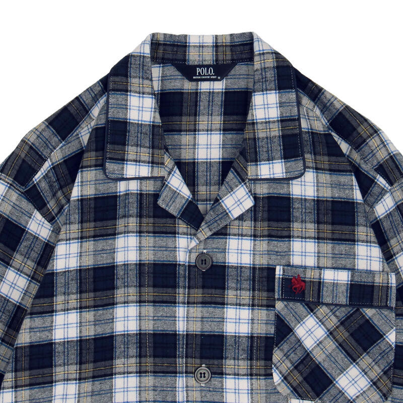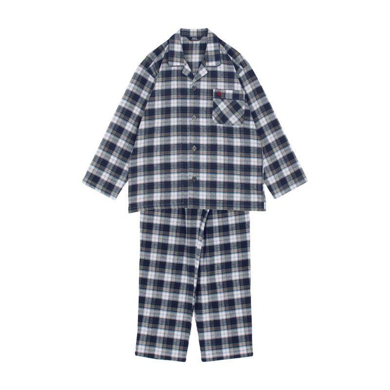 風合い柔らかなネル素材を使用した、前開きのパジャマです。