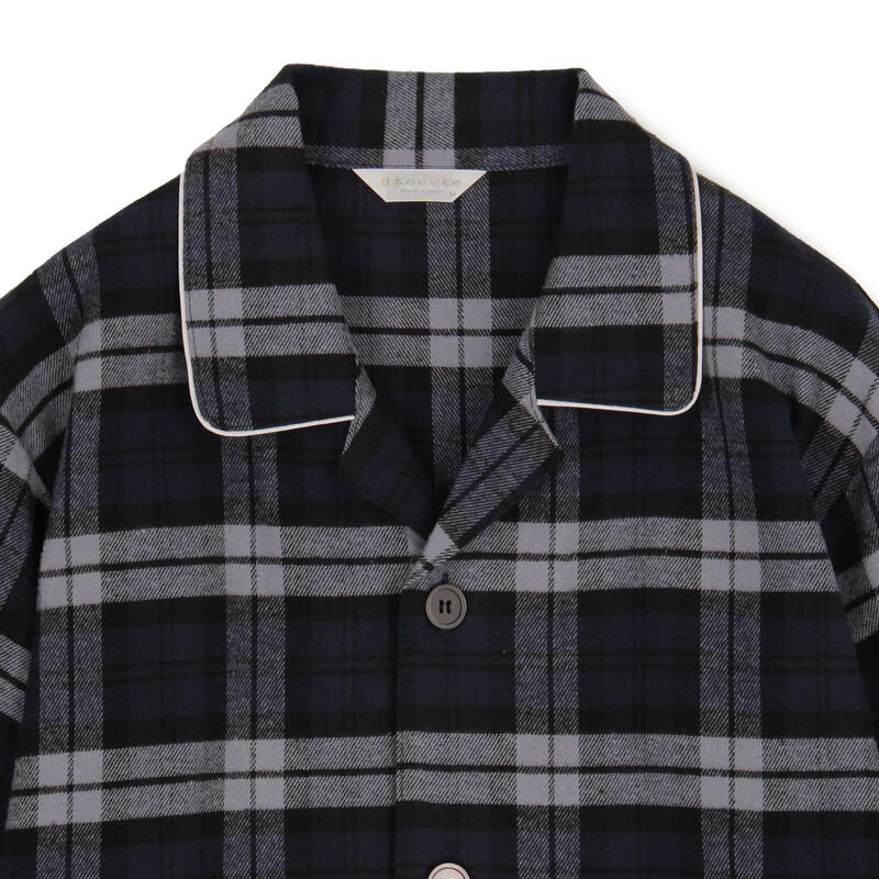 風合い柔らかなネル素材を使用した、前開きのパジャマです。