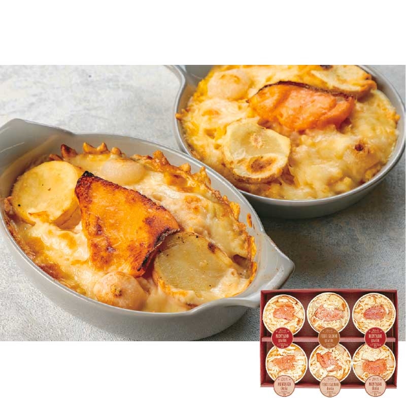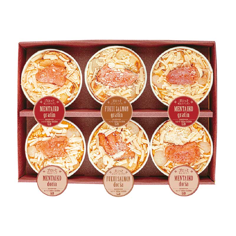 明太子グラタン×2、サーモングラタン×1、明太子ドリア×2、サーモンドリア×1