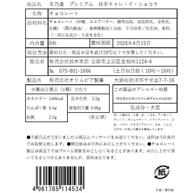 茶師十段小林裕氏のお茶を使った口どけのよいキャレッドチョコレート