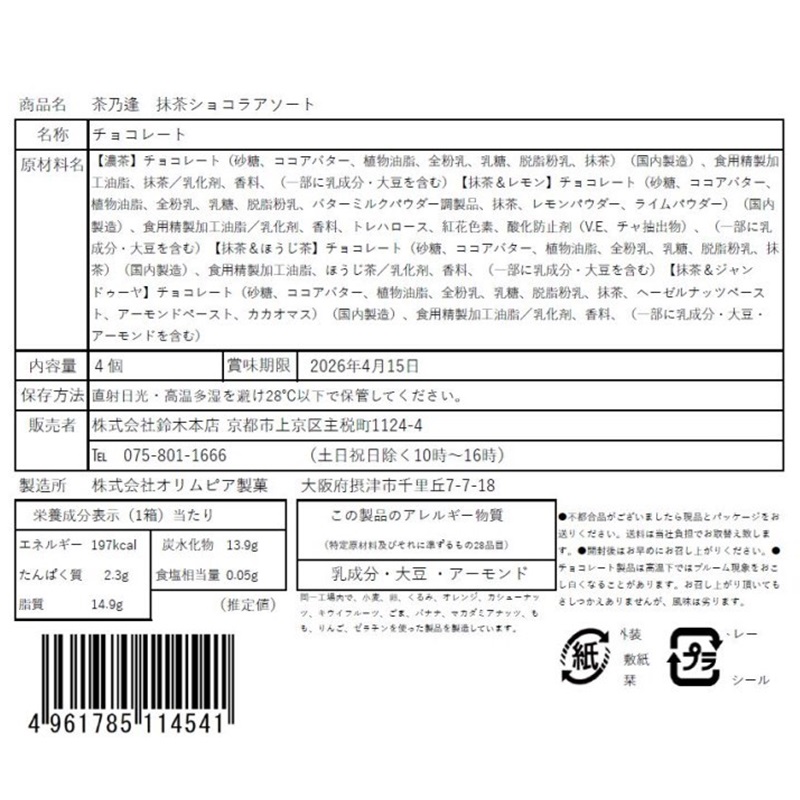 お茶を味わう4種類のショコラの詰合せ