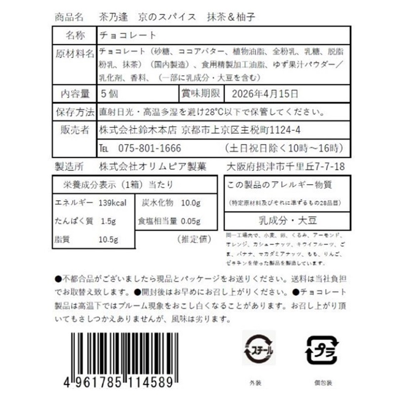 抹茶と柑橘スパイス柚子との絶妙なマッチング
